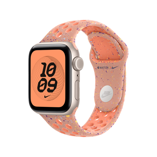 Made with compression-molded perforations for breathability, the Nike Sport Band is durable and strong, yet surprisingly soft. It features colorful flakes that create a randomized pattern, making each band unique. The smooth, dense material drapes elegantly across your wrist and feels comfortable next to your skin. An aluminum pin-and-tuck closure — carefully etched with the Run Swoosh logo — gives the pin a fresh matte finish.