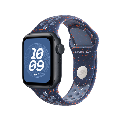 Made with compression-molded perforations for breathability, the Nike Sport Band is durable and strong, yet surprisingly soft. It features colorful flakes that create a randomized pattern, making each band unique. The smooth, dense material drapes elegantly across your wrist and feels comfortable next to your skin. An aluminum pin-and-tuck closure — carefully etched with the Run Swoosh logo — gives the pin a fresh matte finish.