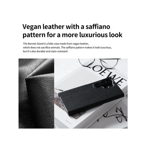 Bonnet Stand is a line of handmade leather cases inspired by the way car bonnets open and close. It's a staple in the Araree lineup, loved for its unique style and luxurious leather. Featuring a luxurious saffiano pattern and a solid finish, this diary case has a magnetic flip closure for all-around security and a card slot.