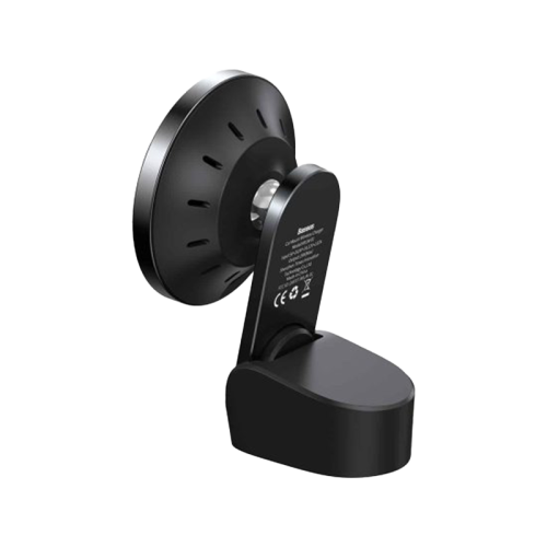 The Baseus Big Energy Car Mount Wireless Charger - Black offers 15W fast wireless charging, magnetic positioning for easy alignment, dual installation options (center console or air outlet), 16 neodymium magnets for secure attachment, and active cooling systems to prevent overheating.