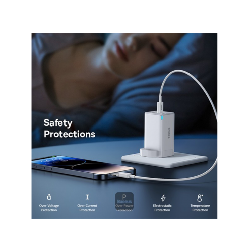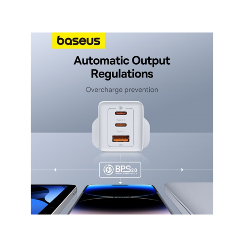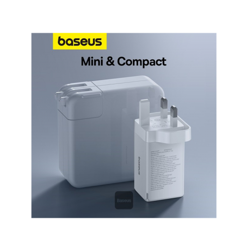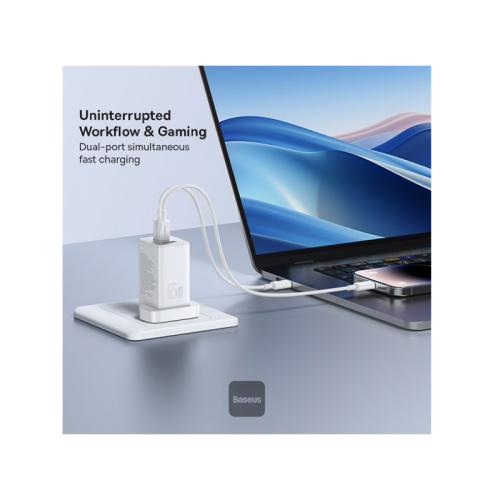 The Baseus GaN5 Pro 1-Port USB-C and 1-Port USB-A 65W Wall Charger offers 65W fast charging, GaN technology for compact size, universal compatibility, and multiple safety protections. It's perfect for charging your devices quickly and efficiently.