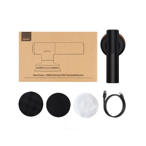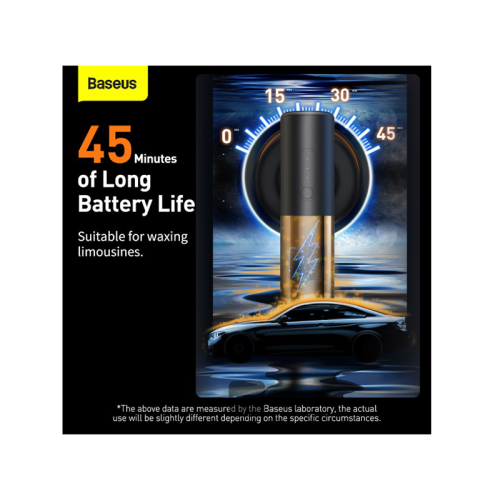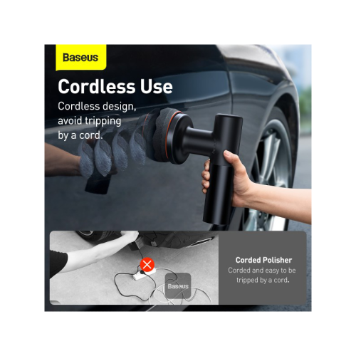 The Baseus NEOPower Wireless Car Waxer Lite Polishing Machine with Adjustable Speed - Black offers cordless operation, 2-speed adjustment (high: 300r/min, low: 200r/min), 4000mAh battery for over 30 minutes of use, ergonomic design, and suitable for both car and home waxing.