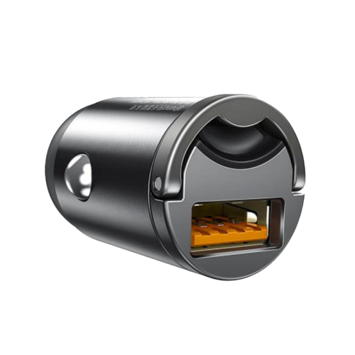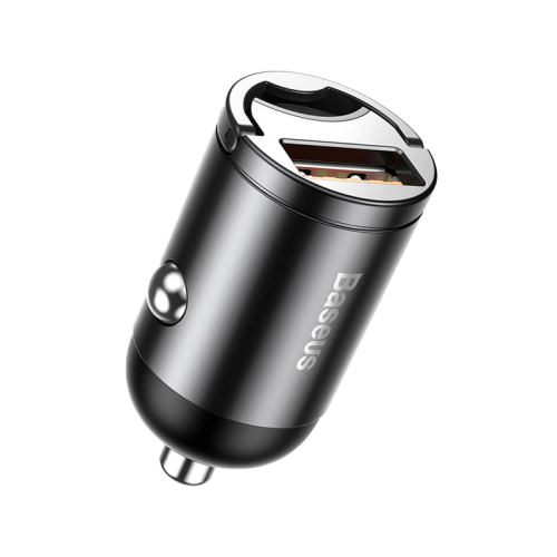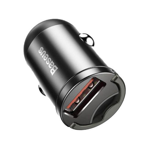 The Baseus Tiny Star Mini USB-A 30W Car Charger - Grey is a compact and efficient car charger that supports Quick Charge 3.0 for fast charging, has a small, discreet design that fits easily into the car's cigarette lighter socket, and provides safe and reliable power allocation for various devices