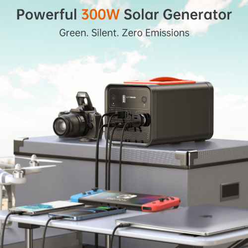 • 300W Mighty Multiport Generator: High power capacity (299.5Wh/83200mAh) with small and portable design features AC/ DC/ USB A/C OUTPUTS: 110V AC output (300W), 2 DC output, 3 USB A ports, 1 USB C PD port and 1 DC car port. It's the most portable all-in-one power station that can meet any demand: charge your laptop, mini-cooler, drone and other outdoor electronics when you are camping.