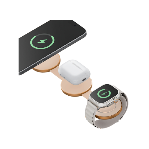 Crafted with a sleek aluminum finish, AluMag Trio delivers a foldable, travel-ready Qi2 wireless charging experience. Power your iPhone, AirPods, and Apple Watch all at once in one compact setup. With support for iPhone Standby and Apple Watch Nightstand modes for added convenience.