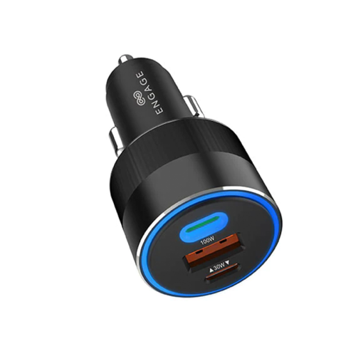 The Engage 2-Port USB-C and 1-Port USB-A 130W Car Charger in Black is a sleek, efficient charging solution for your vehicle. It features two USB-C ports and one USB-A port, delivering up to 130W of power to charge multiple devices simultaneously, including smartphones, tablets, and laptops. Its compact design makes it an ideal travel companion, ensuring your devices stay powered on the go.