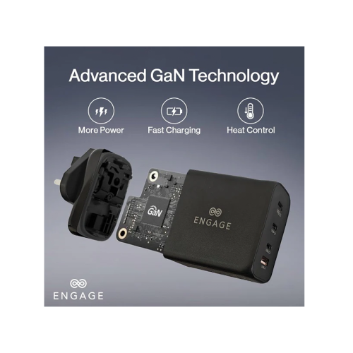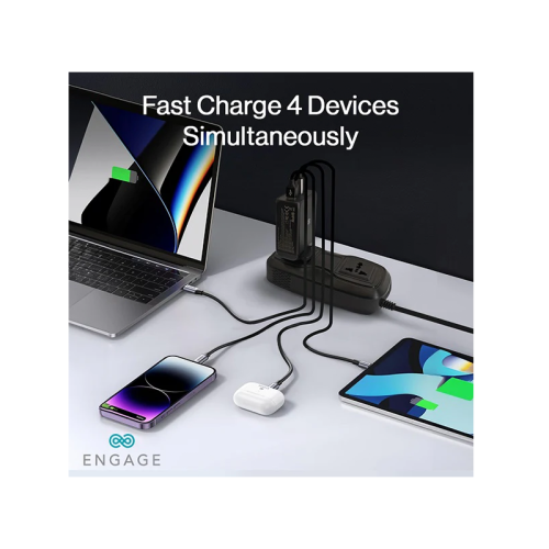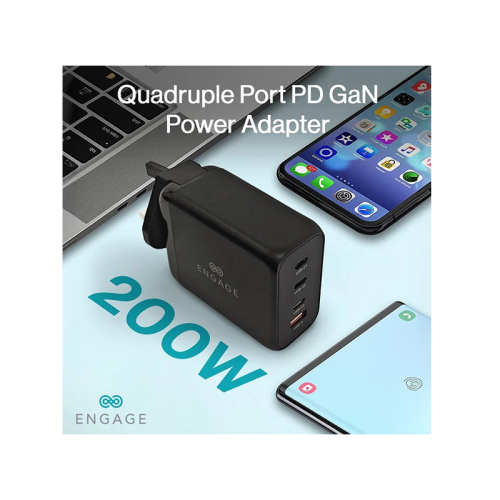 Engage 3 Port USB-C + 1 Port USB-A 200W Gan Travel Charger - Black