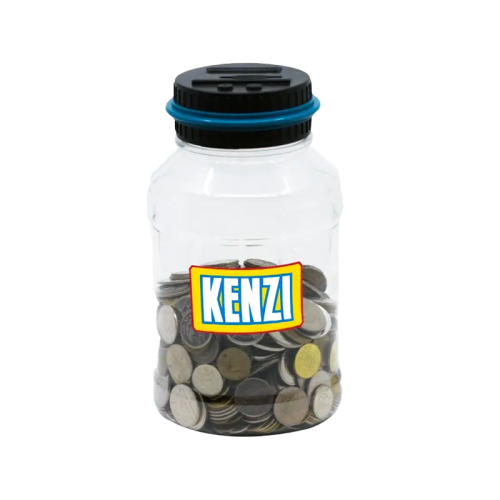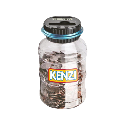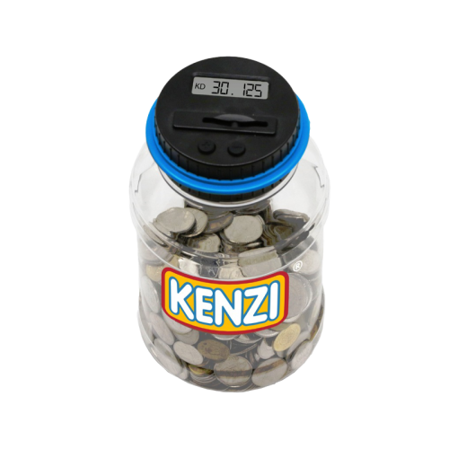 The Kenzi's Coin Jar in Clear is a practical and educational tool for saving loose change. It automatically detects and counts coins, displays the total savings on an LCD screen, and has a child-friendly twist-off lid for easy access. The transparent design allows users to see their savings at a glance, making it a fun way to learn about money management.