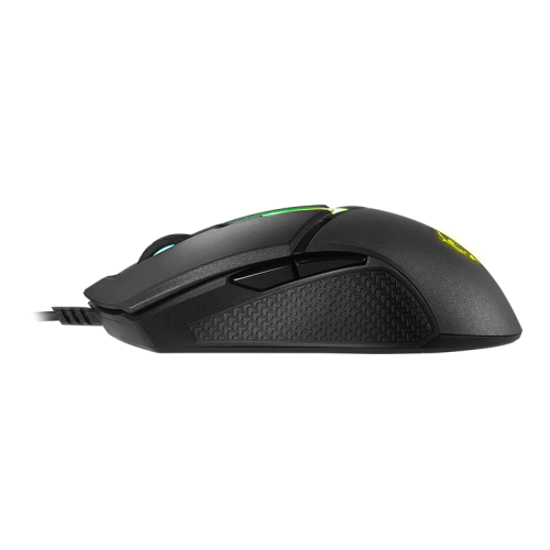The MSI Gaming Gear Clutch GM30 Gaming Mouse (Black) is a versatile gaming mouse featuring a PixArt PAW3327 optical sensor with up to 6200 DPI for precise tracking. It offers RGB Mystic Light for customizable lighting, durable OMRON switches rated for over 20 million clicks, and a symmetrical design suitable for both palm and claw grips. Its dragon-scale side grips and adjustable settings make it ideal for gamers seeking comfort and performance.