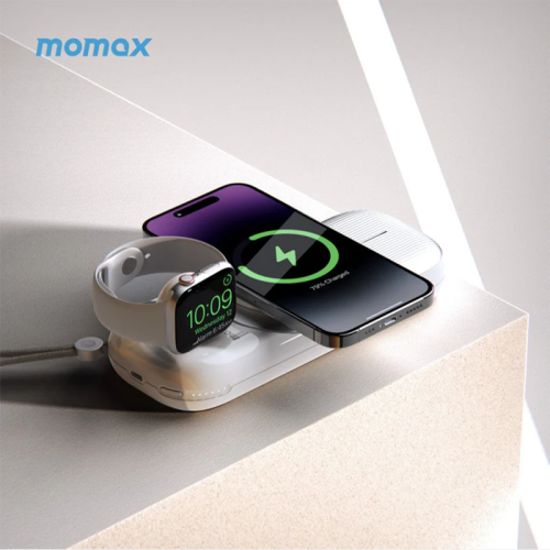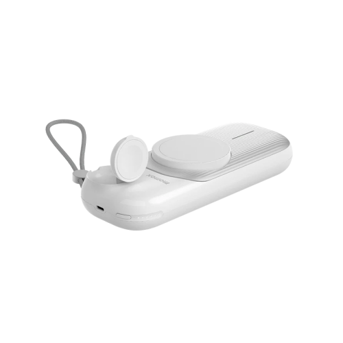 The Momax Airbox Go Power Capsule with MagSafe 10000mAh Power Bank - White is a versatile charging solution with a 10000mAh battery capacity. It supports MagSafe and Apple Watch charging, offers up to 15W wireless fast charging, USB-C two-way 20W PD charging, and can charge multiple devices simultaneously. Its compact design makes it perfect for travel and on-the-go use.