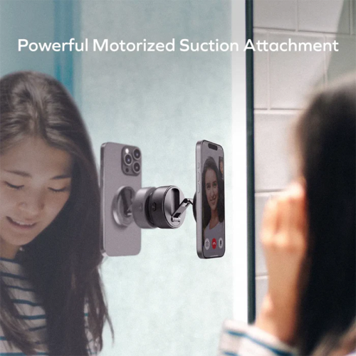 - Compact Convenience, Uncompromised Performance: The 1-Snap Go boasts a foldable, compact design that effortlessly slips into your pocket, bag, or purse. Don't let its small size fool you; this stand packs a punch with its powerful motorized suction attachment, securely gripping any flat, smooth surface with unwavering stability.