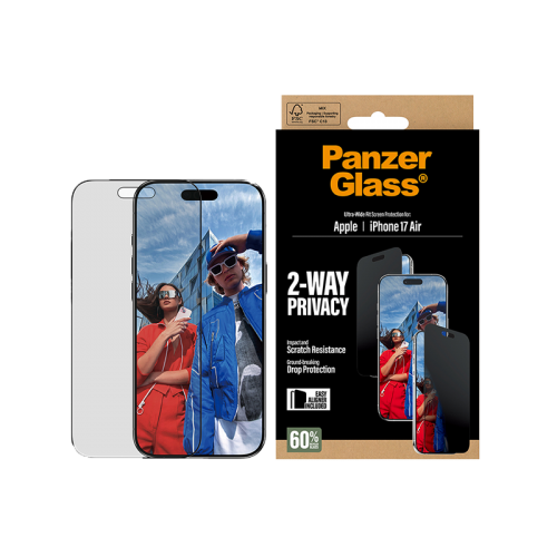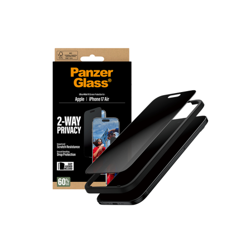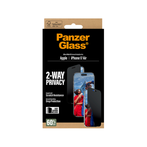 The PanzerGlass® Ultra-Wide Fit privacy screen protector combines powerful protection with personal privacy, using a 60% recycled glass design and a privacy filter that keeps your screen content visible only to you. It resists scratches, drops, and smudges while helping extend your phone’s lifespan. Easy to install with a 100% recycled EasyAligner and step-by-step guidance, it also supports sustainability through reduced packaging and recyclable materials. Designed to cover the full front surface of your phone.
