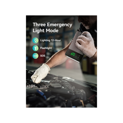 • The included air compressor is perfect for quickly filling a flat tire, and a bright LED flashlight is great for emergency use.