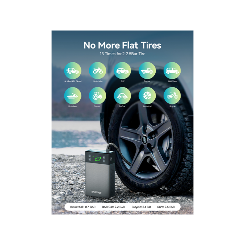 • The RAVPower RP-PB1213 Jump Starter with Air Compressor is a powerful 11200mAh device to get you out of sticky situations.