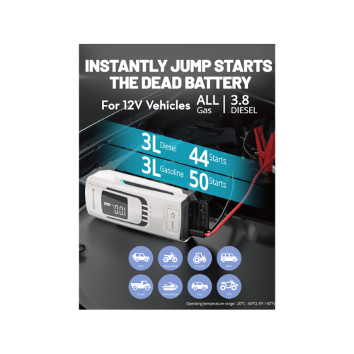 The RAVPower RP-PB1227 is a powerful 3-in-1 jump starter with a large 24000mAh capacity capable of jump-starting your car, truck, or SUV. It doubles as a portable power bank for charging smartphones, tablets, and other USB-powered devices. With a peak current of 1000A and 100W output, it ensures reliable performance in emergencies and everyday situations. The robust design includes safety features like overcurrent and overcharge protection. Ideal for travel and road trips, it’s an essential tool in every vehicle.