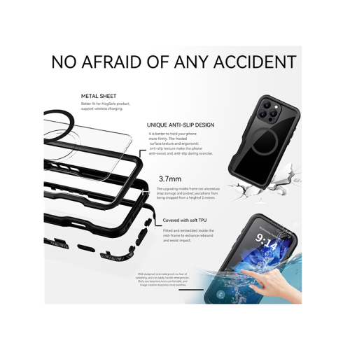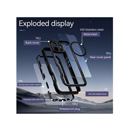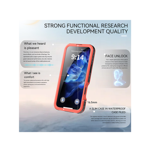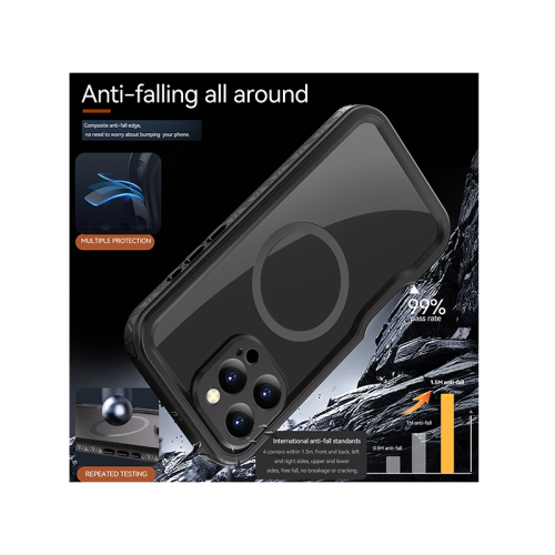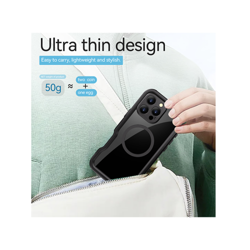 A heavy-duty, 360° protective case built for extreme environments. It’s IP68 certified, offering resistance to water, dust, and mud, while the rugged frame shields against drops and impacts. The case includes a built-in screen protector, maintains full touch sensitivity, and supports MagSafe accessories and wireless charging. Ideal for outdoor work, sports, or adventure use.