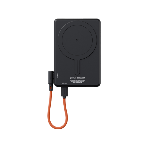 Snap on and power through with ARC. Compact 10,000mAh magnetic power bank featuring a integrated stowaway kick-stand, with a detachable cable included and side USB-C input ports for convenient recharging and pass-through charging while attached.
