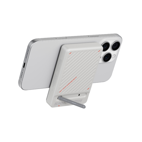 Snap on and power through with ARC. Compact 10,000mAh magnetic power bank featuring a integrated stowaway kick-stand, with a detachable cable included and side USB-C input ports for convenient recharging and pass-through charging while attached.