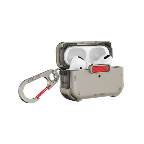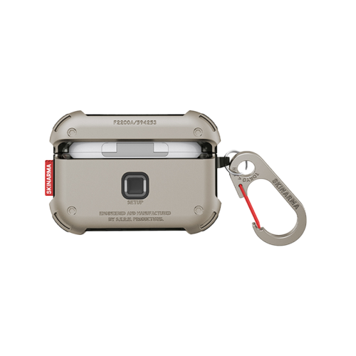 The SkinArma Mecha Case for AirPods Pro 2 - Titanium is a robust and stylish protective case. It features a modern Titanium design, high-quality materials, and precise fit, offering both durability and a sleek appearance for your AirPods Pro 2.