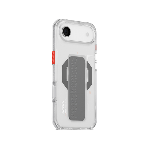 Inspired by fragmented signal grids, HAXA brings a subtle, futuristic look to a clear case, complete with an integrated grip-stand for portrait and landscape viewing.