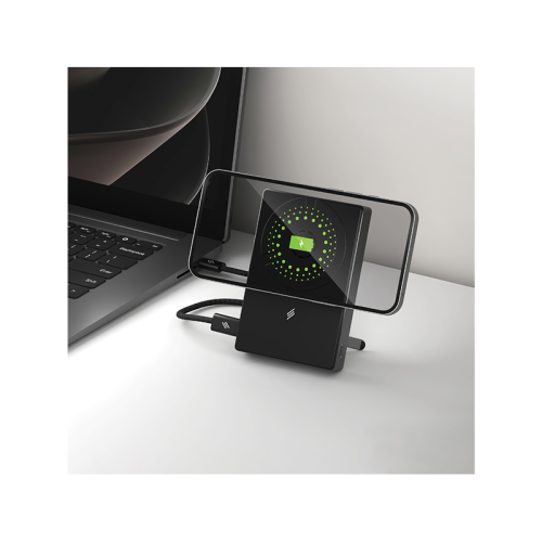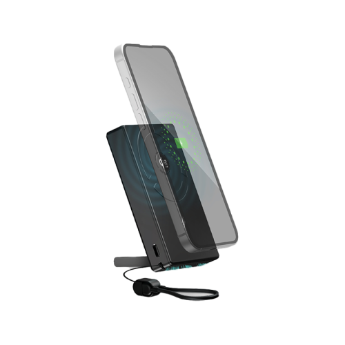 - Foldable Stand: The Power Bank features a sturdy foldable stand that provides a comfortable viewing angle while charging. Perfect for video calls, watching content or hands-free use at your desk or bedside.