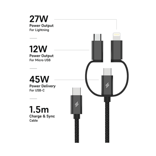- Power Sync Cable: Smartix 3 in 1 fast charge cable is the perfect solution for fast and efficient charging of your USB-C, lightning & micro USB devices. This premium cable is designed to deliver 45W power delivery for USB-C devices and 27W power output for Lightning devices, 12W power output for Micro USB devices, allowing you to quickly charge your devices and get back to your busy life.