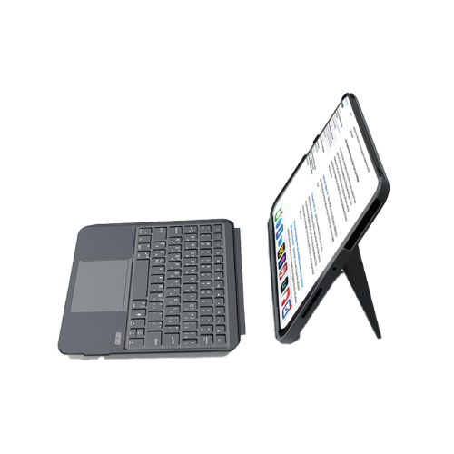 The Smart Premium 4 in 1 Detachable Wireless Keyboard with Trackpad for iPad Air 11" M2 & 10.9" / Pro 11" M2 / 10.9 10th Gen is a versatile accessory that transforms your iPad into a fully functional laptop. It features a detachable Bluetooth keyboard, built-in kickstand, trackpad with customized gestures, and English/Arabic keys