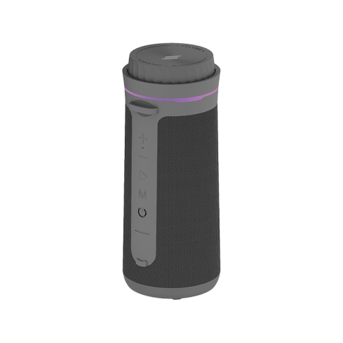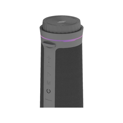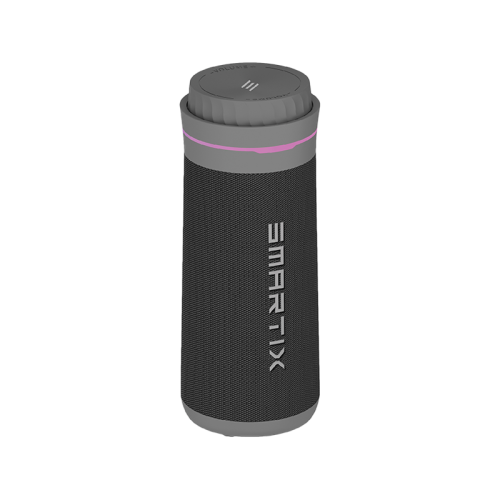 The Smart Premium Sound Pod Air Bluetooth Speaker - Grey is a portable speaker with powerful dual speakers for crisp highs and deep bass. It features built-in RGB lights for a dynamic audiovisual experience, wireless connectivity for seamless music streaming, and a sleek design that fits any setting. It also has easy controls for effortless music management.