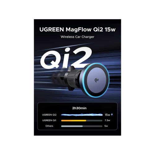 - Qi2 15W Ultra Fast Charging: The UGREEN MagFlow 2-in-1 wireless car charger supports Qi2 rapid charging certification, and compared to the Qi7.5W wireless charger, this product can charge wireless with up to 15W output. You can fully charge your iPhone in 2.5 hours and enjoy the ultimate charging