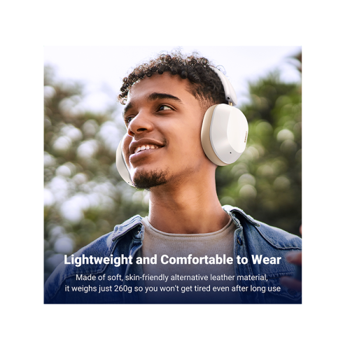 - (Ear pads that gently hug your ears and prevent fatigue even for long periods of time) We have revised the design and internal structure for comfort. The earpads are made with thick and comfortable material to the touch that wraps around your ears so you can use them comfortably even for long periods of time. Weighing only 9.5 oz (264 g), you can enjoy the lightweight and comfortable wearing experience that will make you forget you are wearing it
