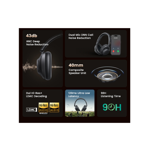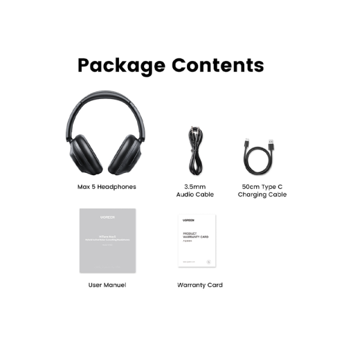The UGREEN HiTune Max5 Hybrid Active Noise-Cancelling Headphones in Black HP202 deliver premium audio performance combined with advanced hybrid noise-cancelling technology. Designed to effectively reduce both low and mid-frequency ambient sounds, these headphones create a quiet environment for immersive listening whether you’re commuting, working, or relaxing. Featuring high-resolution drivers, they produce rich, balanced sound with deep bass, clear mids, and crisp highs, ensuring every detail in your music or calls is heard with precision. The ergonomic over-ear design provides superior comfort for extended wear, while the adjustable headband and plush ear cushions offer a secure fit. Equipped with intuitive touch controls, you can easily manage playback, calls, and volume without reaching for your device. With a long-lasting battery life, the HiTune Max5 supports hours of uninterrupted listening and quick charging for convenience on the go. Its sleek black finish combines style with durability, making these headphones a reliable companion for daily use and travel.
