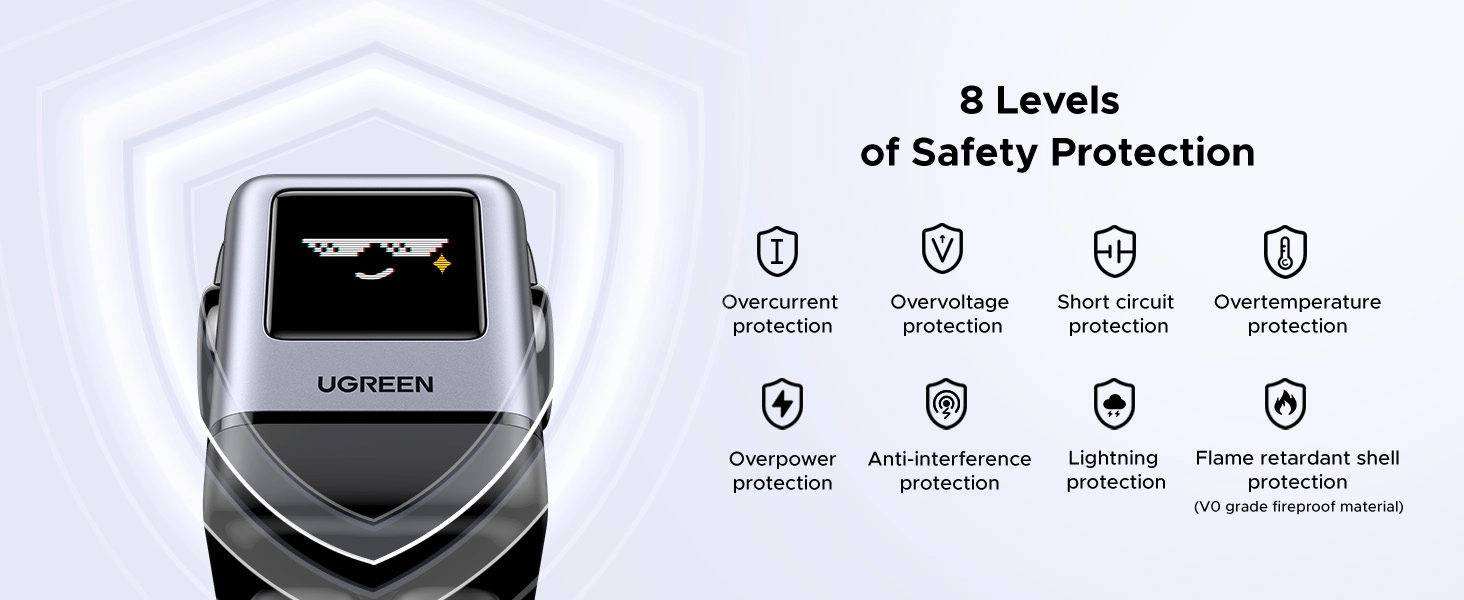 - 8-Level Safety Protection: Equipped with advanced chips for efficient power delivery and protection against overvoltage, overheating, short circuit, and more.