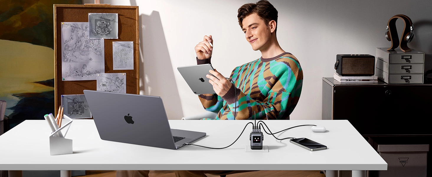 - 100W Fast Charging: GaN charger powers MacBook Pro 16" to 43% or iPhone 15 Pro to 60% in just 30 minutes via USB-C.
