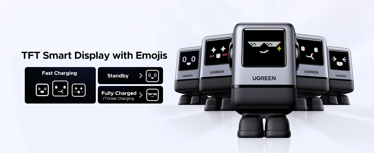 - Groovy Robot Design: Creative robot-shaped charger with a TFT screen that shows fun charging expressions. Magnetic feet attach securely to laptops.