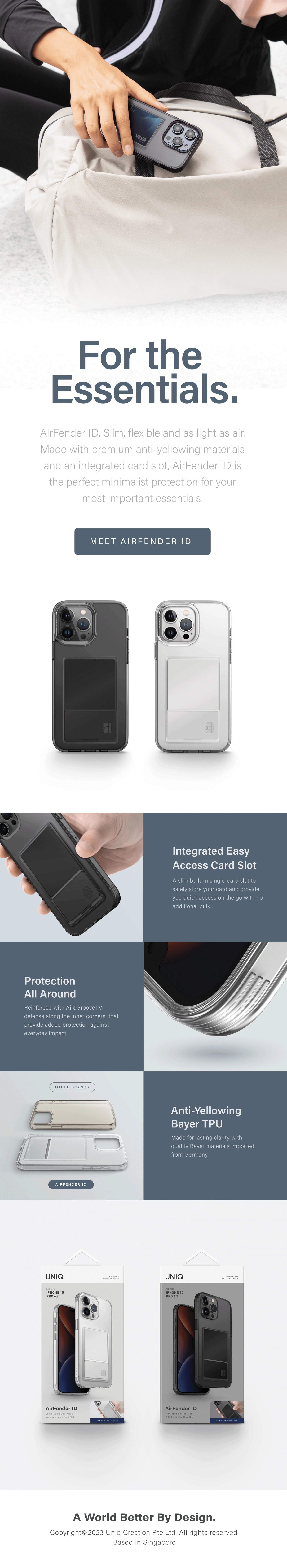Designed for the minimalist, made for your key essentials. Made with an ultra-slim profile, anti-yellowing finish and an integrated card slot, the Air Fender ID case offers maximum protection for both your card and phone with no additional bulk.