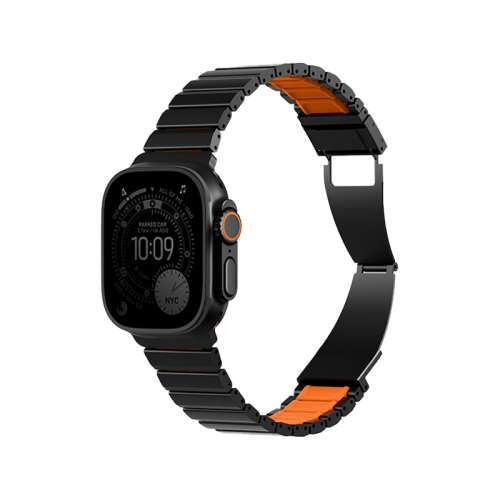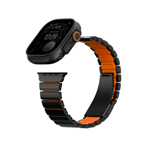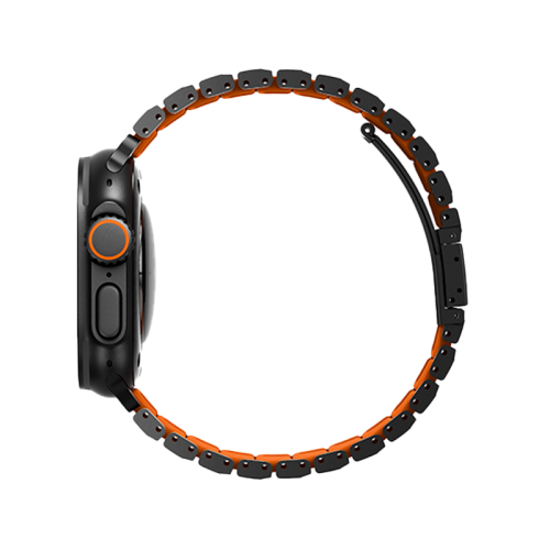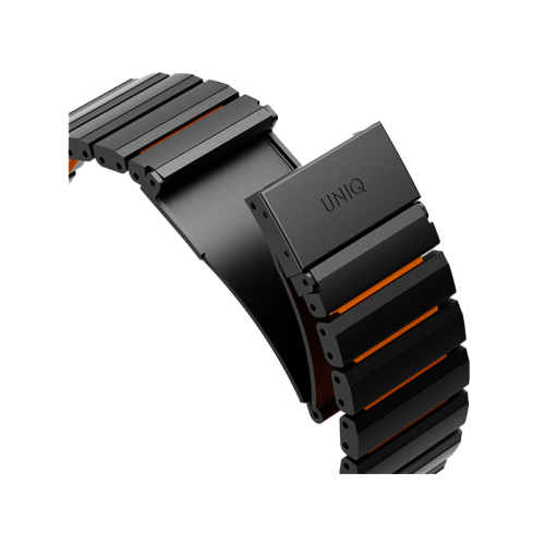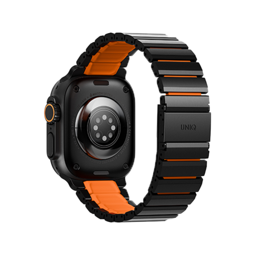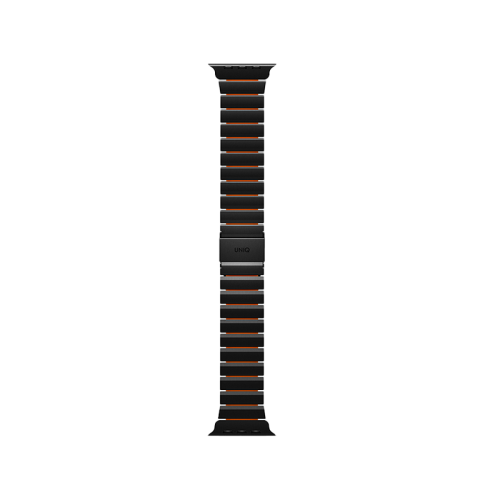 Uniq Strova Flex Self-Adjustable Steel Link Band for Apple Watch 49/46/45/44mm - Midnight Black/ Volt Orange