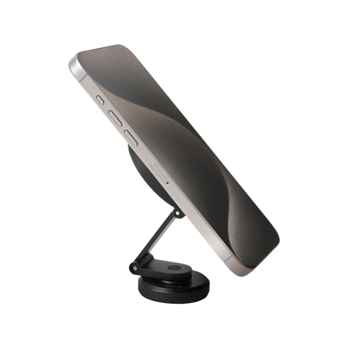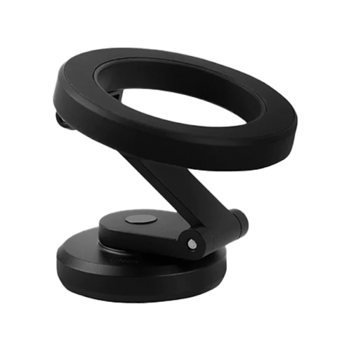 The Uniq Velo Universal Magnetic Mount - Midnight Black offers strong magnetic attachment for secure phone holding, 360-degree rotation for flexible positioning, adjustable arm design for custom viewing angles, easy installation with 3M tape, and compatibility with various devices and cases.