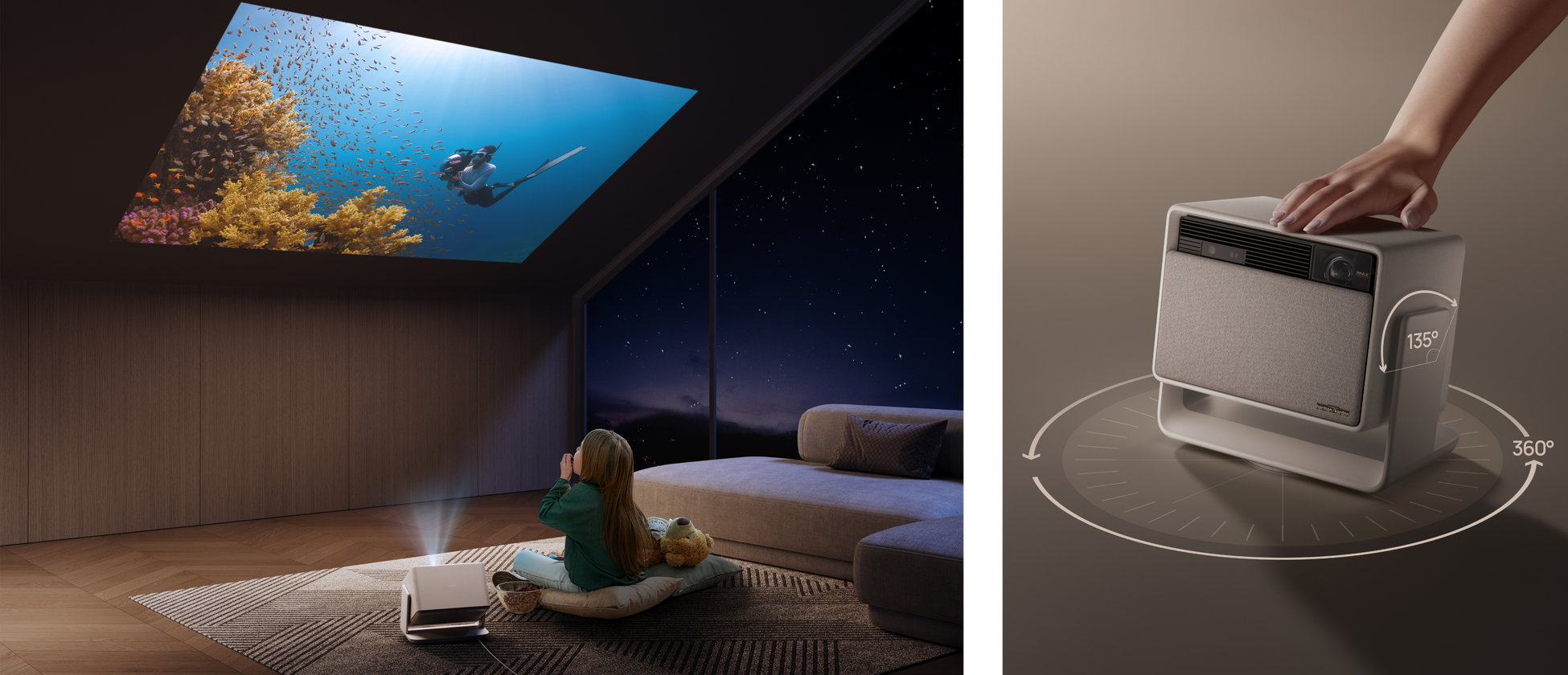 HORIZON S Max automatically adapts the aspect ratio when projecting from the side, delivering an immersive viewing experience.