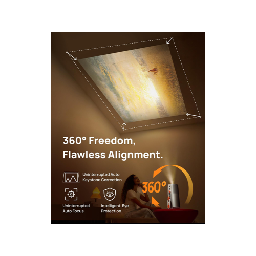 Project from any angle—floor, wall, or ceiling—with the universally adjustable 360° stand. ISA technology automatically aligns and corrects the image for the perfect view every time.