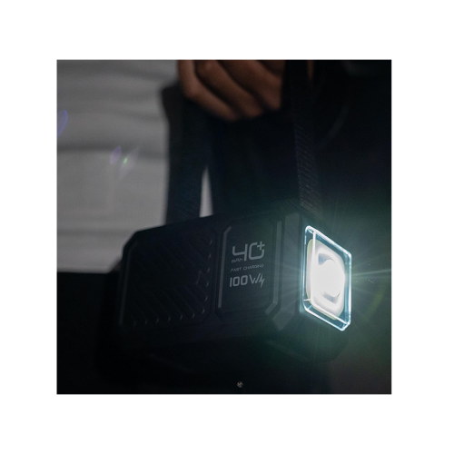 The Goui Beast 100W 40000mAh Power Bank with Flash Light - Black is a high-capacity power bank designed for versatile use. It features a 100W output, a massive 40000mAh battery capacity, and a built-in LED flashlight. This power bank is capable of fast and efficient charging for multiple devices, making it perfect for travel and outdoor adventures. Its sleek black design ensures durability and portability.