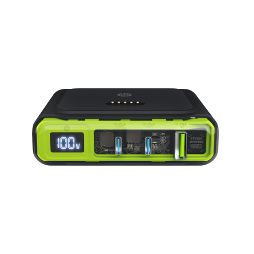 The Goui Titan 100W Station Desktop Charger with Digital Display - Black is a powerful charging station designed for efficiency and convenience. It features a 100W output, multiple charging ports, and a digital display for easy monitoring of charging status.