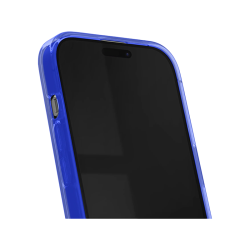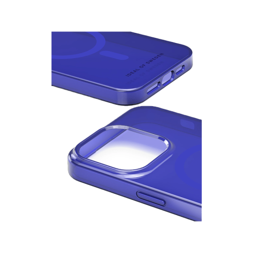 The iDeal of Sweden Clear MagSafe Case for iPhone 15 Pro - Cobalt Blue is a stylish and durable protective case made from recycled materials. It features a sleek cobalt blue tint, a slim profile, raised edges for camera and screen protection, and is MagSafe-compatible, providing both aesthetic appeal and eco-friendliness.