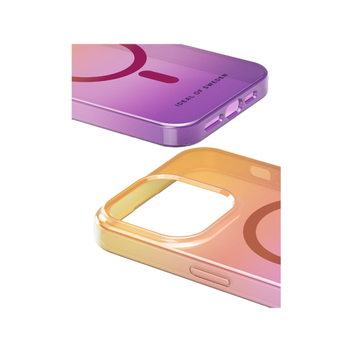 The iDeal of Sweden Clear Case for iPhone 15 Pro - Vibrant Ombre is a transparent, protective case made from recycled materials. It offers a slim profile, raised edges for camera and screen protection, and is MagSafe-compatible, providing both style and durability.
