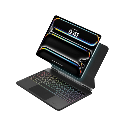 The Smart Premium Magnetic Backlight Keyboard With Trackpad for iPad Pro 11" M4 offers detachable design, RGB backlit keys, magnetic attachment, customized trackpad gestures, and iPadOS shortcuts.