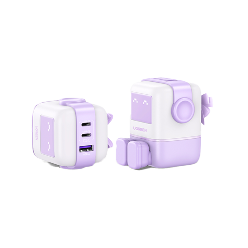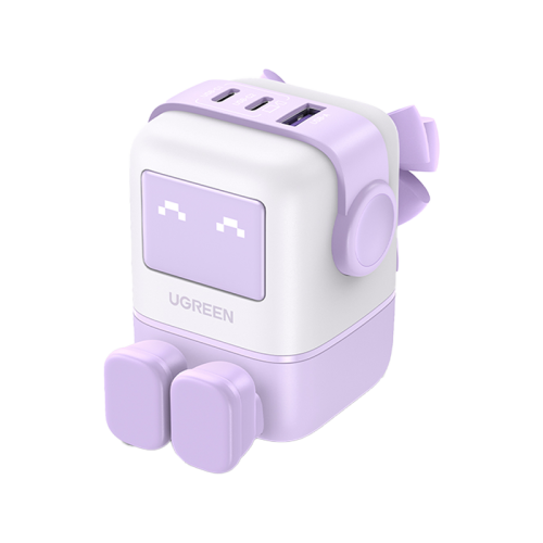 Ugreen Nexode 2-Port USB-C and 1-Port USB-A 65W GaN Wall Charger With LED Display - Purple