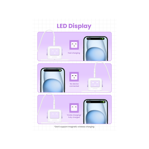 - LED Display: LED robot-face tells you exactly when devices are fully charged.